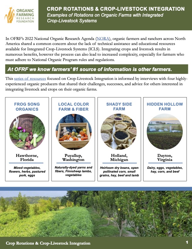 To better understand the practical implications of ICLS, a series of resources have been developed, informed by interviews with four highly experienced organic producers. These individuals generously shared their stories, encompassing the challenges they faced, the successes they celebrated, and the valuable advice they have for those contemplating the integration of livestock and crops into their farming operations.